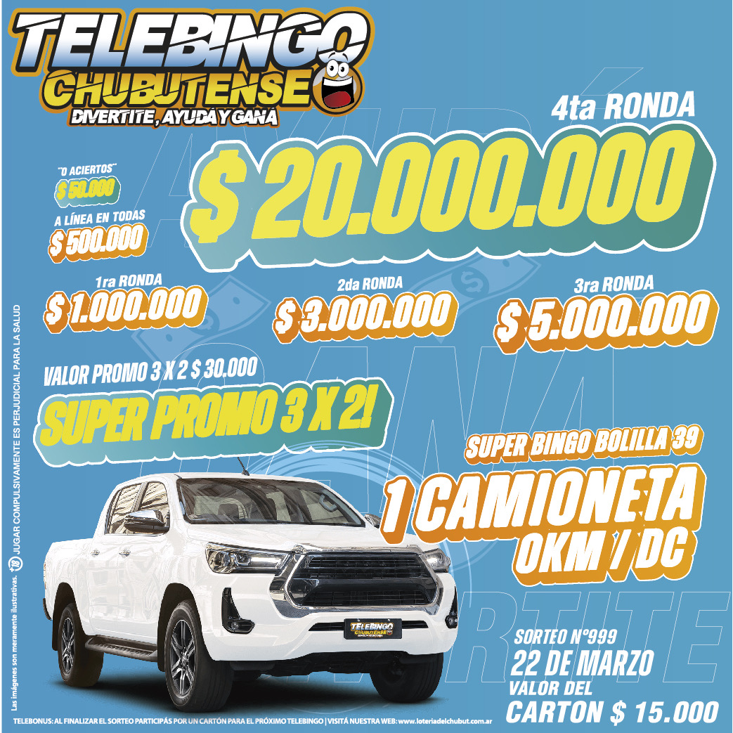 CHUBUT EL TELEBINGO CHUBUTENSE SORTEA MÁS DE 29 MILLONES EN EFECTIVO Y UNA CAMIONETA DESDE TECKA 3 marzo, 2026