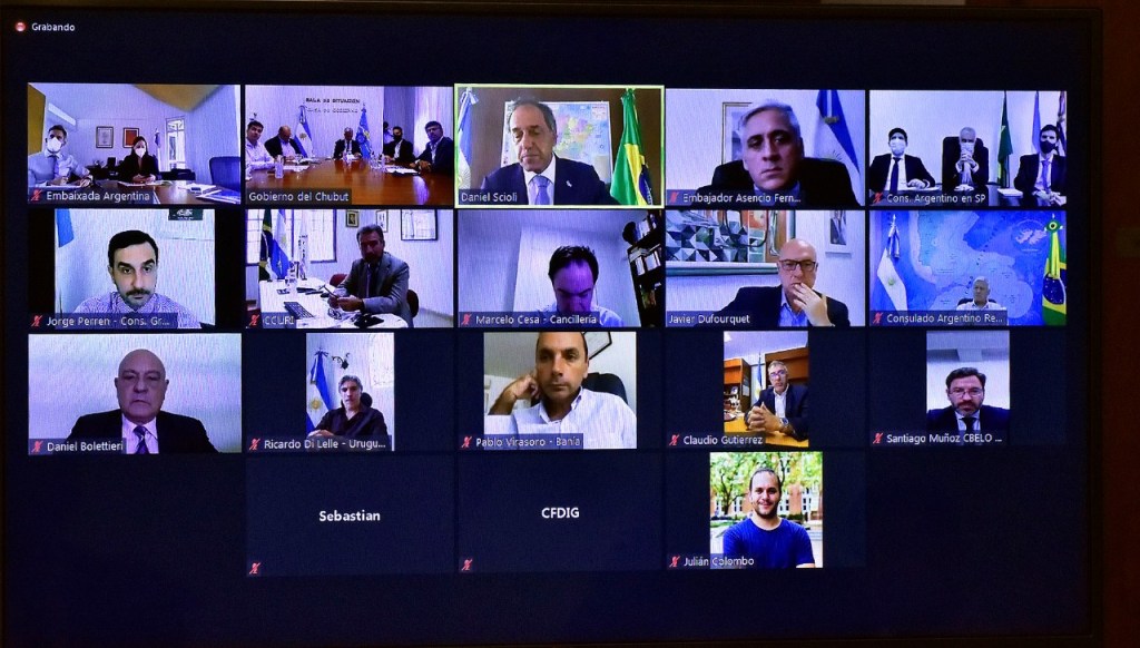 Junto a Arcioni y Scioli, también participaron del encuentro virtual los ministros de Agricultura, Ganadería, Industria y Comercio, Leandro Cavaco, y de Turismo, Néstor Garcia; el secretario de Pesca, Gabriel Aguilar; el subsecretario de Coordinación Financiera, Ángel Nurchi; y autoridades de la Cancillería.