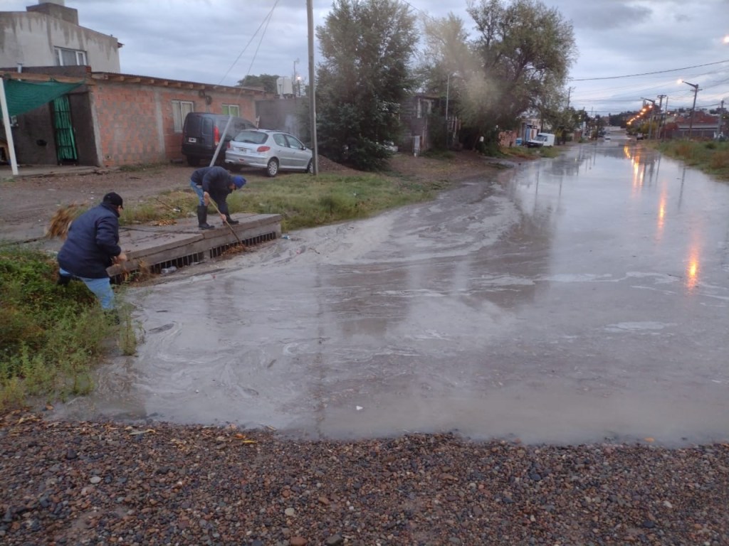 Desde la comuna se trabaja para evitar anegamientos, realizar cortes preventivos de calles y asistir a las familias que presenten algún tipo de emergencia. Uno de los cortes se realizó en Belgrano y Roca, tras el llamado de vecinos y comerciantes de la zona que alertaron sobre la cantidad de agua acumulada en ese sector. También se trabajó en la calle Canal del Barrio Don Bosco, donde se destaparon sumideros.