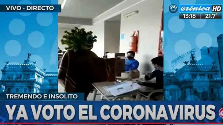 El coronavirus votante se hizo presente ayer en Jujuy. Quienes estaban trabajando en la mesa se sorprendieron y se tomaron a chiste lo que ocurría. A diferencia del hombre carpincho del nordelta, el coronavirus sí pudo votar.