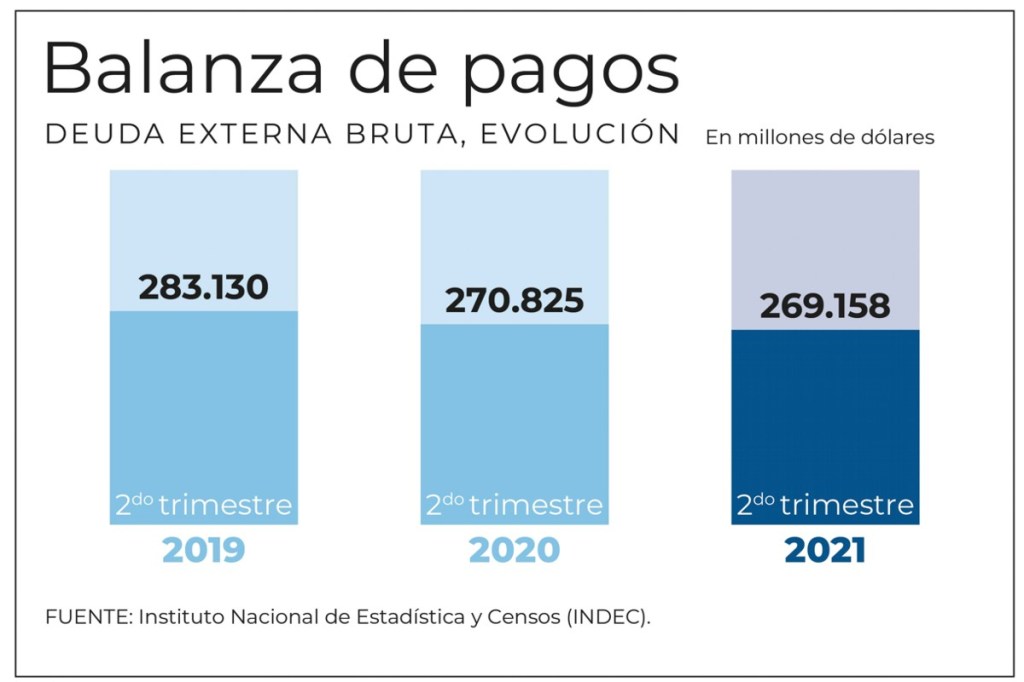 La Balanza de Pagos dejó un superávit de US$ 2.763 millones al cierre del segundo trimestre de 2021, por debajo de los US$ 2.824 millones obtenidos de igual período del 2020, informó hoy el Instituto Nacional de Estadística y Censos (Indec).