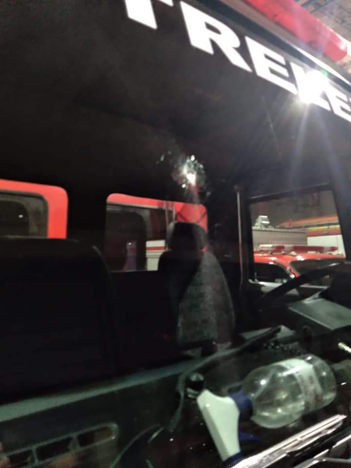 Desde la Asociación de Bomberos se informó que el domingo a las 20:14 horas, mientras el Móvil 16 concurría a una intervención, en la intersección de las calles 25 de Mayo y Gastre, recibió un impacto en el parabrisas con un objeto contundente (hecho que es materia de investigación), produciéndole a un bombero una herida en su ojo derecho.