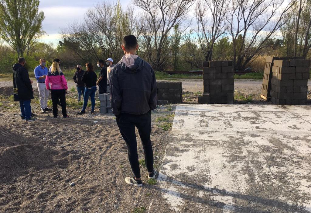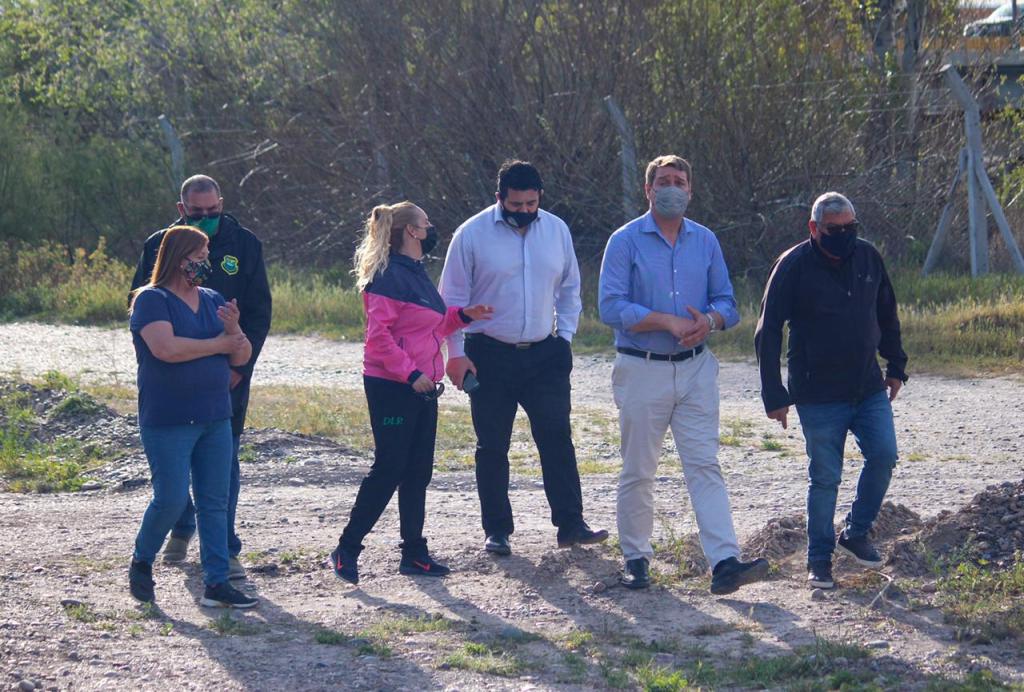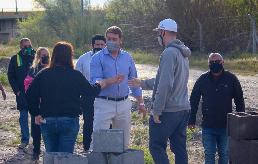El intendente de Rawson, Damián Biss, junto al secretario de Gobierno, Educación y Coordinación de Gabinete, Miguel Larrauri, estuvieron recorriendo las instalaciones del club, donde están avanzando con la bloquera y los trabajos de ampliación de los vestuarios.