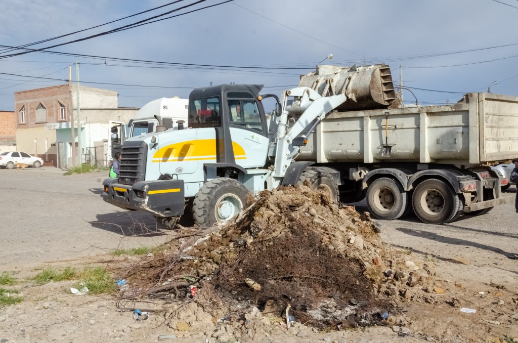 El personal de la Secretaría de Ambiente, Producción y Desarrollo Sustentable de Rawson y de la Gestión Integral de Residuos Sólidos Urbanos de la ciudad capital, realizaron este miércoles trabajos de saneamiento ambiental en el barrio Gregorio Mayo.
