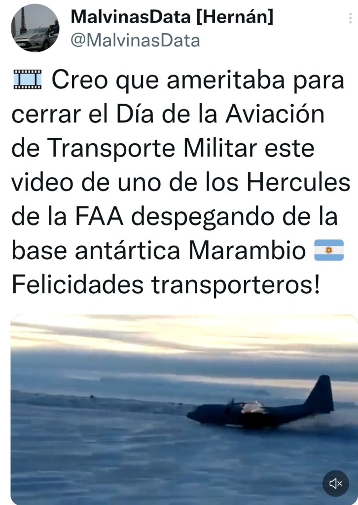 Por el día de la Aviación de Transporte Militar, un usuario de Twitter publicó el video de un Hércules Argentino despegando desde la Base Marambio en medio de la nieve. Algo fascinante, que amerita compartirlo con ustedes!