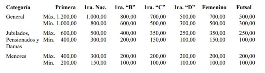 A continuación el listado de valores para las entradas generales, los que según la AFA, regirán a partir de la fecha.
