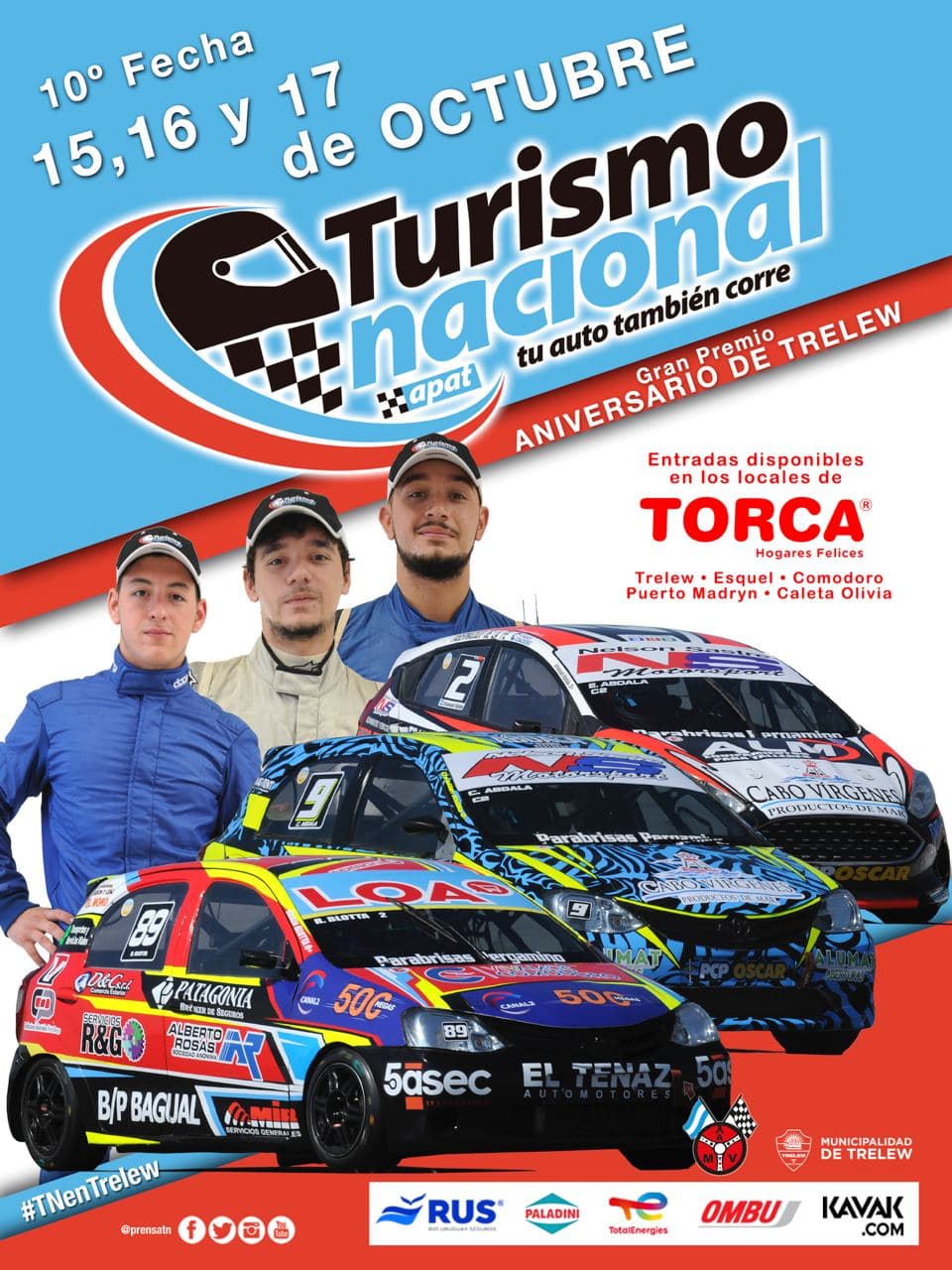 Se destaca la concreción, entre este viernes 15 y el domingo 17 de octubre, del “Gran Premio Aniversario de Trelew”, correspondiente a la décima fecha de las clases 2 y 3 del Turismo Nacional, con unos 80 pilotos en pista entre las dos categorías. El TN visitó por última vez Trelew el 10 de marzo de 2013, competencia que tuvo como ganadores a Emiliano Giacoponi (Clase 2) y Fabián Pisandelli (Clase 3).