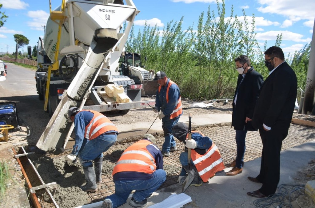 El funcionario detalló que “en el lugar se realizan trabajos de excavación, hormigonado de refuerzo de tabiques de hormigón de la primitiva estructura del canal de riego y el relleno con piedra bocha y calcáreo.
