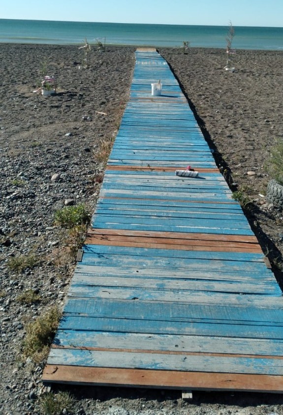 Al respecto, el tallerista del área de Discapacidad, Vicente Sales señaló que “realizamos trabajo de reposición de rampas en el sector de los Palos de Playa Unión, algunas tablas estaban deterioradas por el paso del tiempo, otras quebradas y agregamos cinco metros más de palets que ahora están más cerca de la costa” agradeciendo “al vecino José Aquino quien es jardinero y nos donó plantas, hemos puesto cuatro plantas de tamariscos de cada lado de las rampas”.
