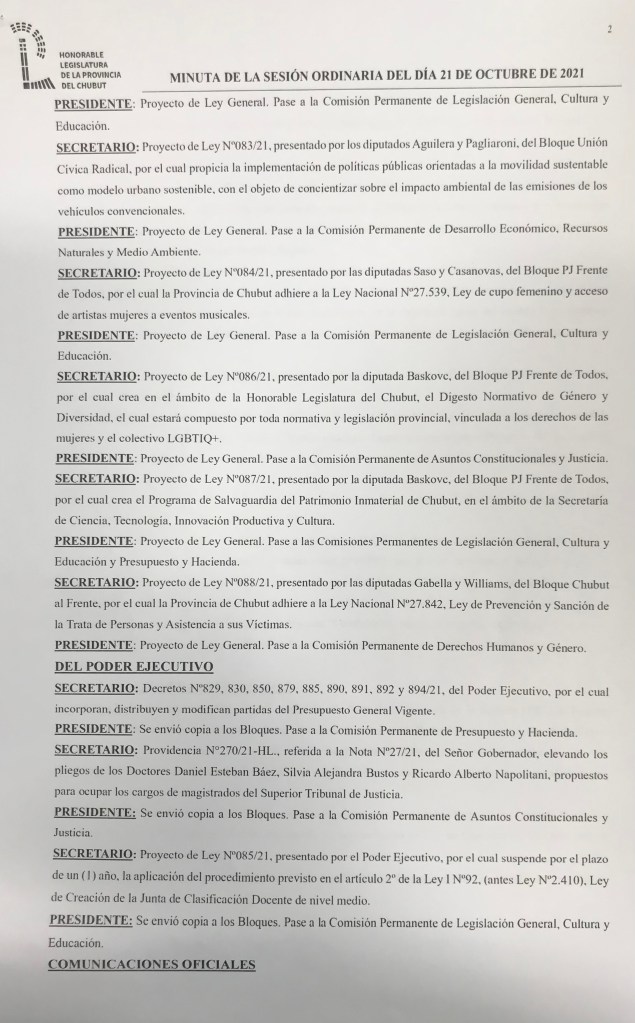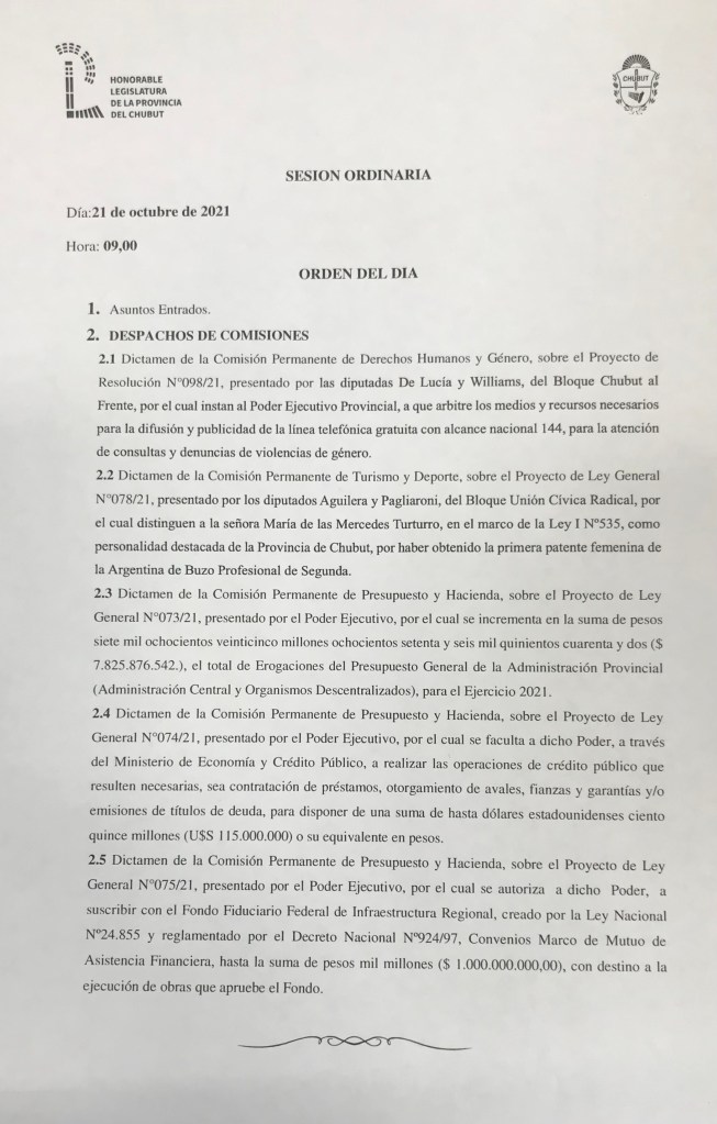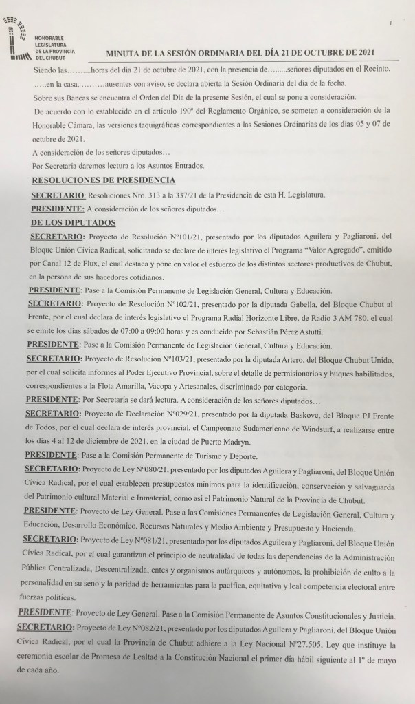 Hoy jueves 21 de octubre se realiza una nueva sesión legislativa y será la última hasta el 30 de noviembre cuando el Cuerpo vuelva a las sesiones.