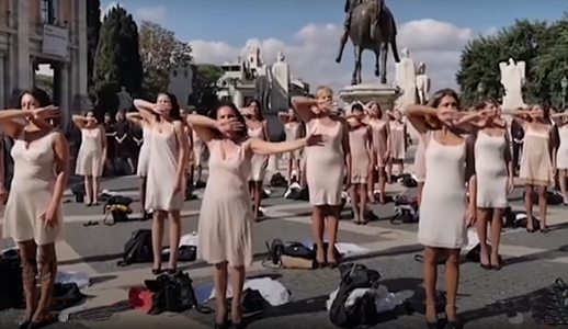 En pleno centro de Roma y como protesta por las condiciones que están viviendo, las azafatas de Alitalia protagonizaron un sonoro alboroto en la plaza Capitolina despojándose de su uniforme y desnudándose. “Nosotras somo Alitalia”, claman después de permanecer en silencio y descalzas tras quedarse en ropa interior.