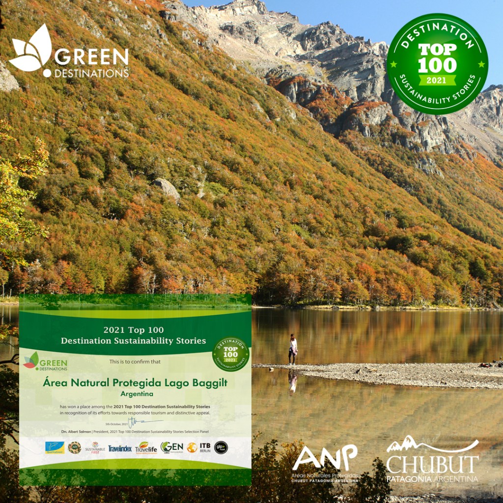 Las Áreas Naturales Protegidas Península Valdés y Lago Baggilt fueron seleccionadas recientemente como parte del «Top 100 Destination Sustainability Stories», tras aplicar en un concurso que lleva a cabo anualmente la Asociación “Green Destinations” con el fin de reconocer destinos sustentables.
