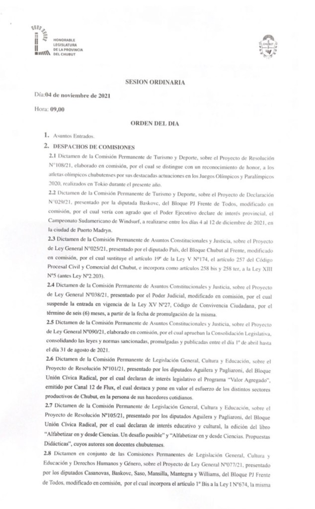 Arrancó una nueva sesión de la Legislatura del Chubut. Será la última hasta el 30 de noviembre. Seguila en vivo.