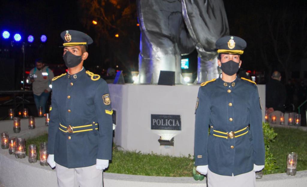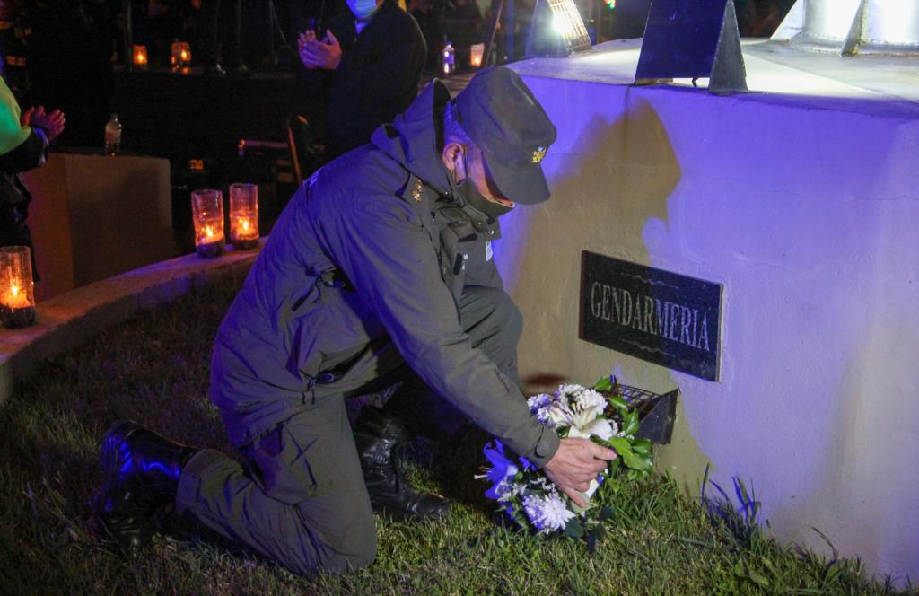 También se hizo un minuto de silencio, se procedió a realizar un aplauso generalizado, miembros de la Policía del Chubut realizaron disparos de salva en honor a los caídos en cumplimiento del deber en la pandemia.