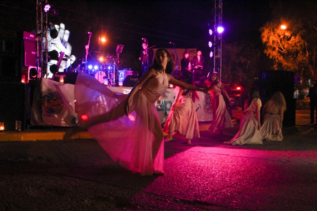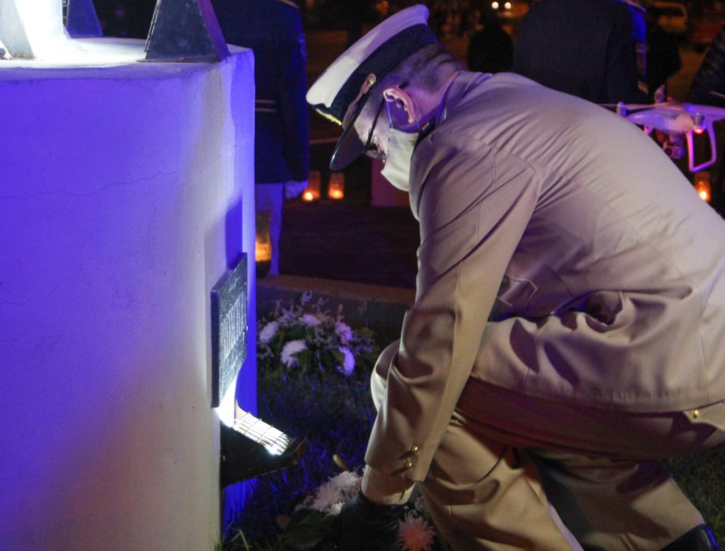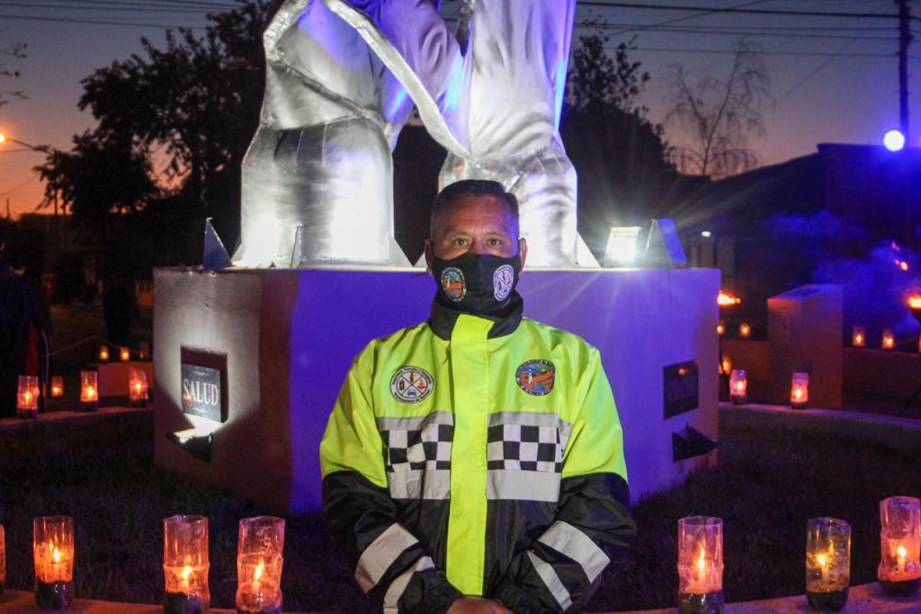 El paso siguiente, fue nuevamente la actuación del grupo, la presentación de un ballet realizando una danza al ritmo de una melodía de violín e invitando al primer mandatario municipal como así también a los principales responsables de las fuerzas de seguridad a dejar ofrendas florales en cada una de las placas identificatorias de los sectores de los trabajadores esenciales que figuran al pie del Monumento al Aplauso; además en el lugar se encontraban las velas encendidas.