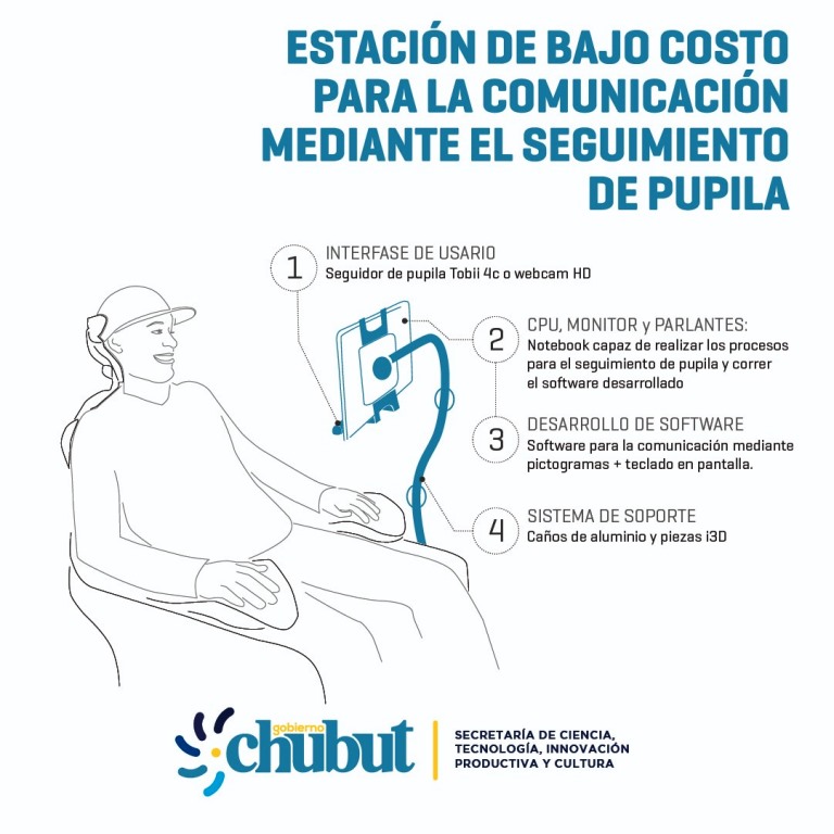 El objetivo del proyecto es el desarrollo de una estación que permita la comunicación de las personas que tengan limitaciones en la capacidad de moverse y en el habla, utilizando Sistemas Aumentativos y Alternativos de Comunicación (SAAC) con acceso por mirada (tecnología Eye Tracking). Como alternativa, este proyecto busca disminuir los costos al utilizar hardware fácilmente accesibles como el seguidor de pupila más económico del mercado “Tobii 4C” y el desarrollo de una suite de software gratuito con licencia libre de GNU.
