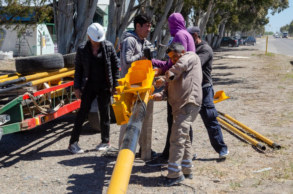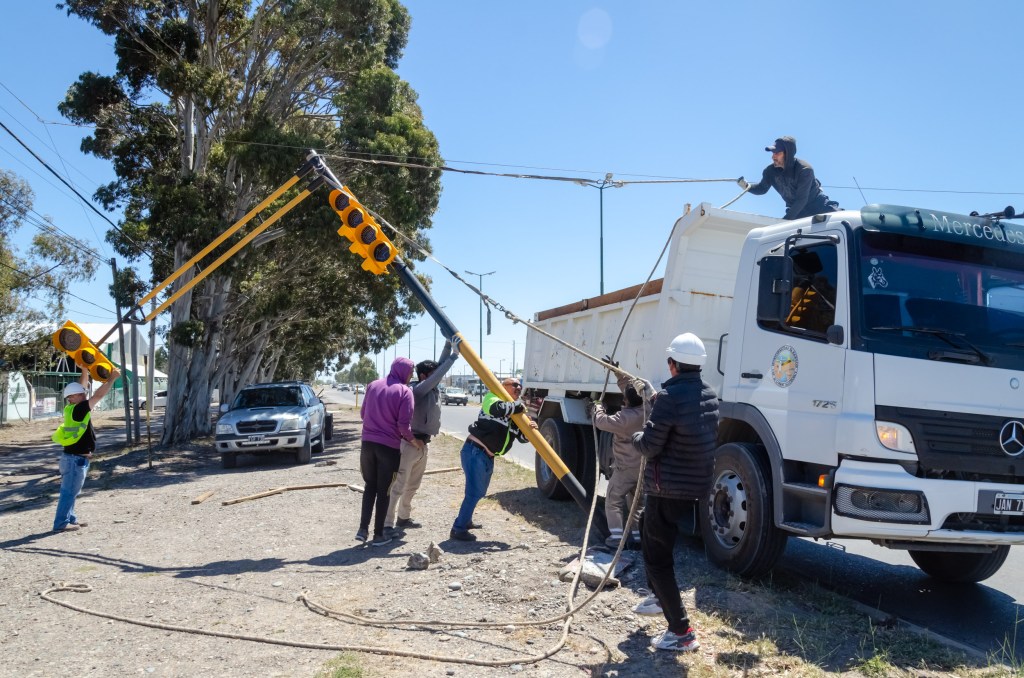 Durante el mediodía de este martes se procedió a colocar el primer semáforo en la intersección de calles 9 de Julio y Jujuy, en uno de los principales ingresos a la ciudad de Rawson por ruta 7.