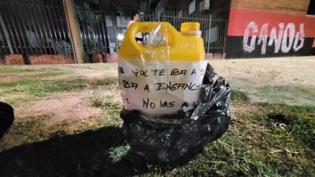 Junto al vehículo, un bidón de combustible apareció con un mensaje breve y contundente. «Te dije que te iba a seguir y te iba a enganchar, sorete. No vas a querer jugar más con ninguna mujer».