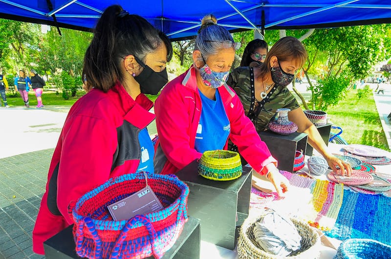 Este miércoles en inmediaciones de la Plaza Independencia se colocaron tres unidades productivas a cargo de la Escuela Municipal de Artesanías, en conjunto con el MTE mujeres y fundación La Minga. Las tres unidades productivas contaron con los grupos «Nuevas Creaciones» que realizan toallitas reutilizables para la gestión menstrual, también «Hilando Tradiciones», que hacen hilado en uso y en rueca con lanas patagónicas y el grupo «Manos Creativas» que reciclan telas en desuso de las fábricas textiles, a través de los recuperadores urbanos para la creación de cuencos y alfombras.