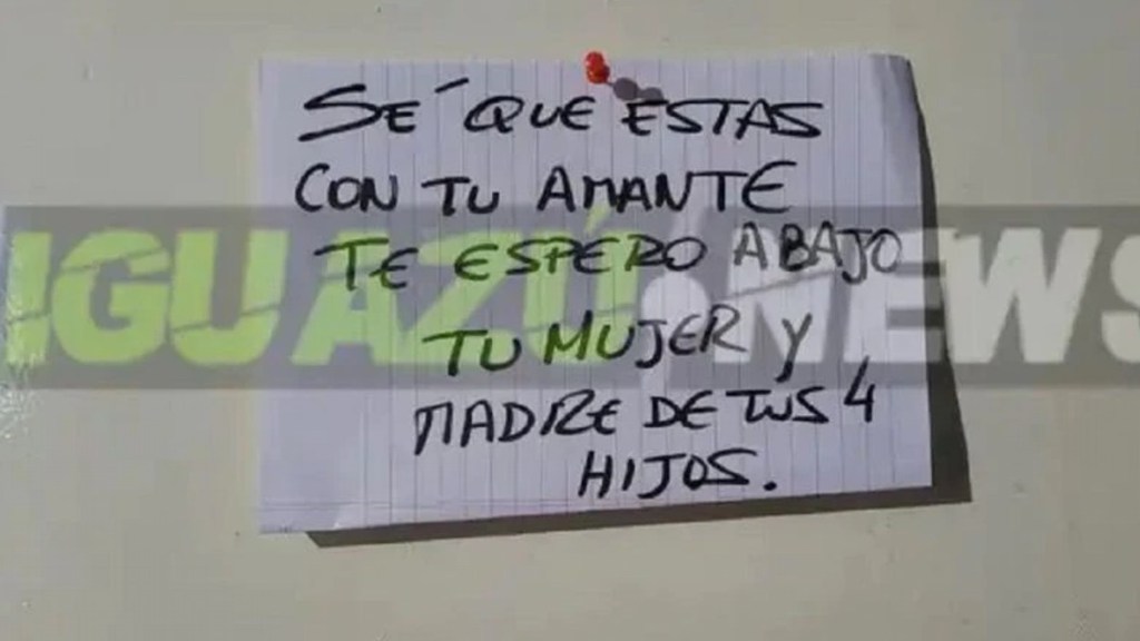 A los empleados les reveló que había tomado un papel y lápiz y le escribió un mensaje a su esposo que luego le pegó en la puerta de la habitación. “Sé que estás con tu amante, te espero abajo. Tu mujer y madre de tus 4 hijos”.