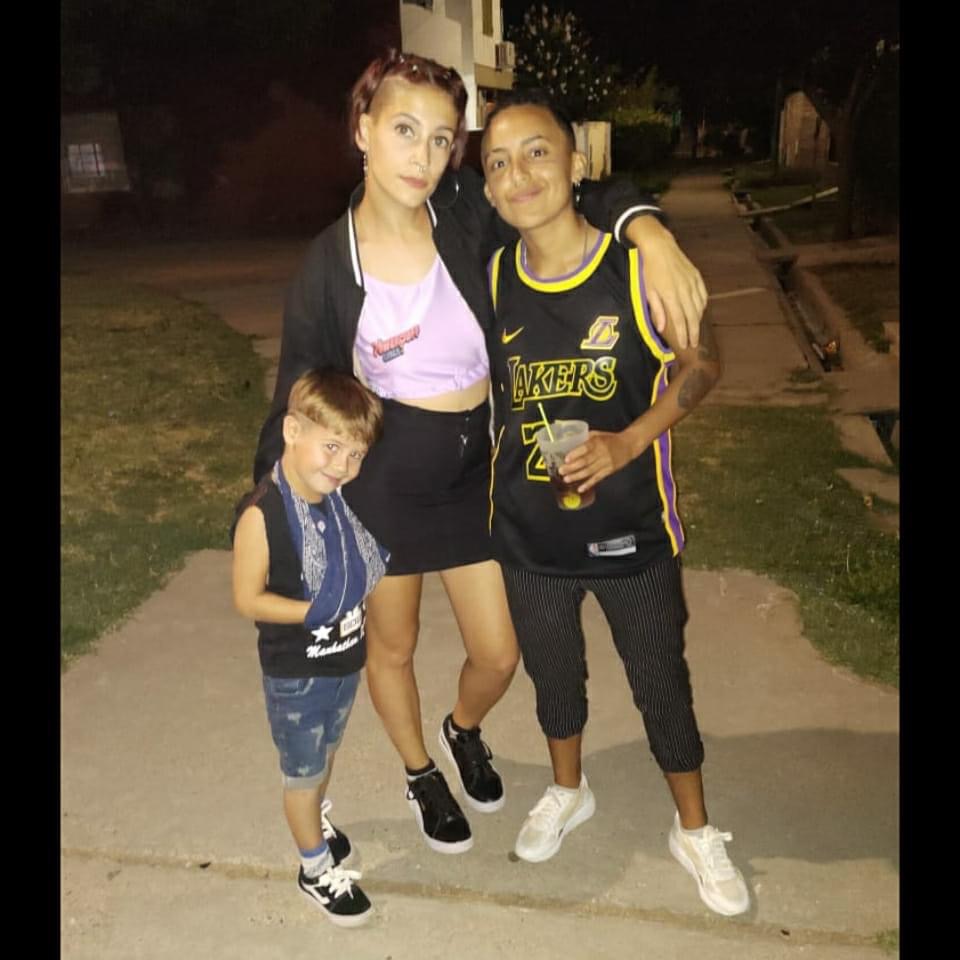 La imagen, publicada por El Diario de La Pampa, tiene como protagonistas a las detenidas Magdalena Espósito Valenti -mamá del nene asesinado- y su pareja, identificada como Abigail Páez. Lucio aparece con un pañuelo en el cuello, que le sostiene el brazo derecho lesionado.