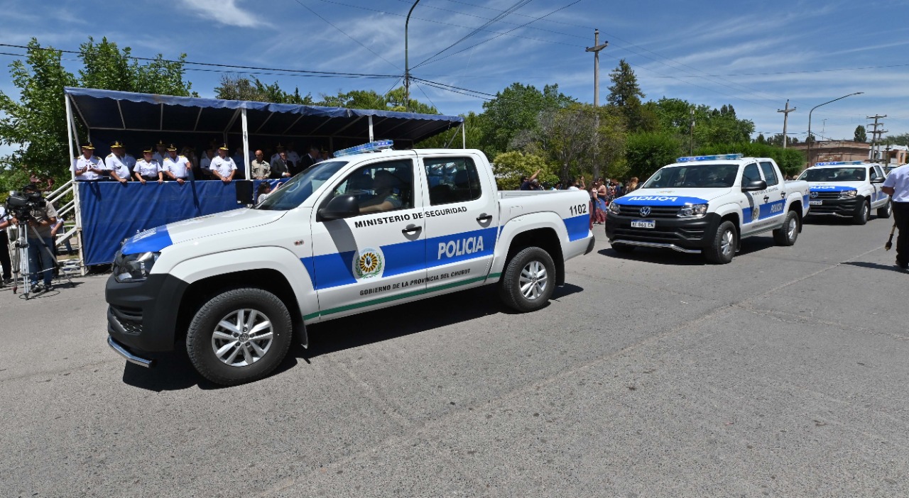 El gobernador encabezó este martes el acto por el 64° aniversario de la Policía del Chubut y remarcó que el año próximo se incrementará en casi un 200 por ciento el presupuesto destinado a la Seguridad. Se entregaron reconocimientos y hubo un desfile de las fuerzas de seguridad, ocasión en la que se presentaron 14 camionetas Amarok de las 64 adquiridas.