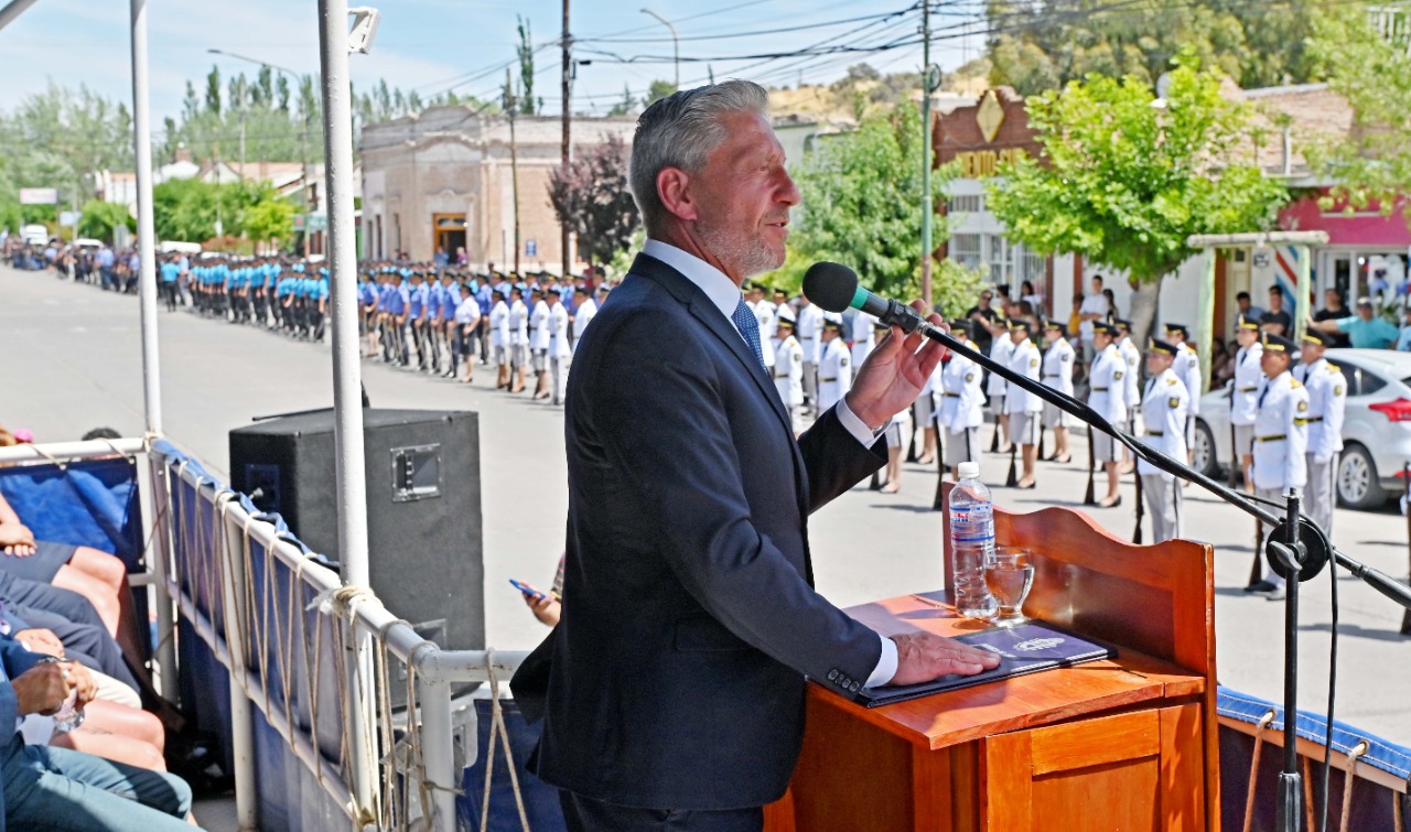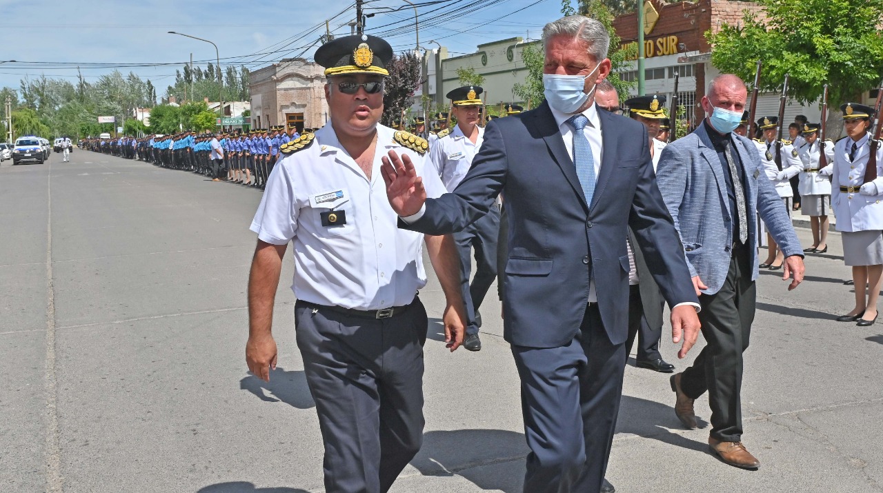“Y a ustedes, que tomen el ejemplo porque por algo la Policía del Chubut es reconocida como una de las mejores del país”, afirmó el mandatario provincial.