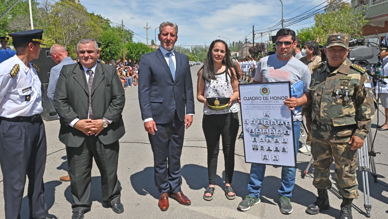 “Se habló de esfuerzo, sacrificio, responsabilidad y estamos seguros que tenemos que sobreponernos ante cualquier obstáculo y es lo que venimos haciendo día a día. Por eso estamos pensando en una recomposición salarial necesaria, y a ustedes mi reconocimiento y respeto. Por eso quiero que sepan que este presupuesto que enviamos a Legislatura tiene un incremento del 192% exclusivamente para la Policía”, señaló el mandatario provincial.