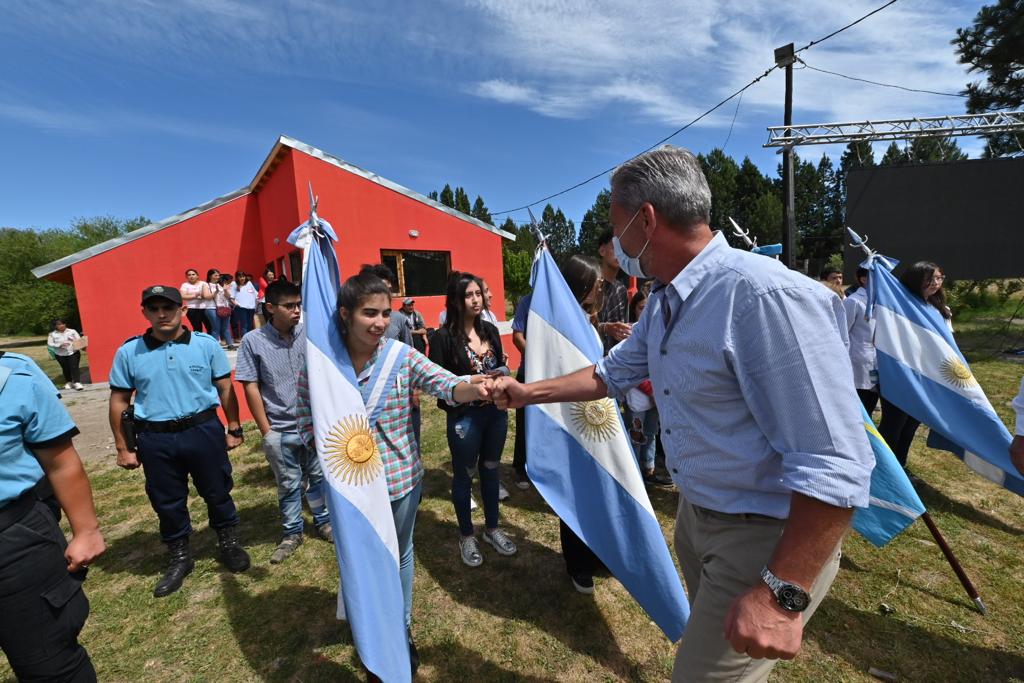 El verde predio de la Fiesta Provincial del Rafting fue escenario de la ceremonia encabezada por el Gobernador y el intendente municipal, Ariel Molina.
