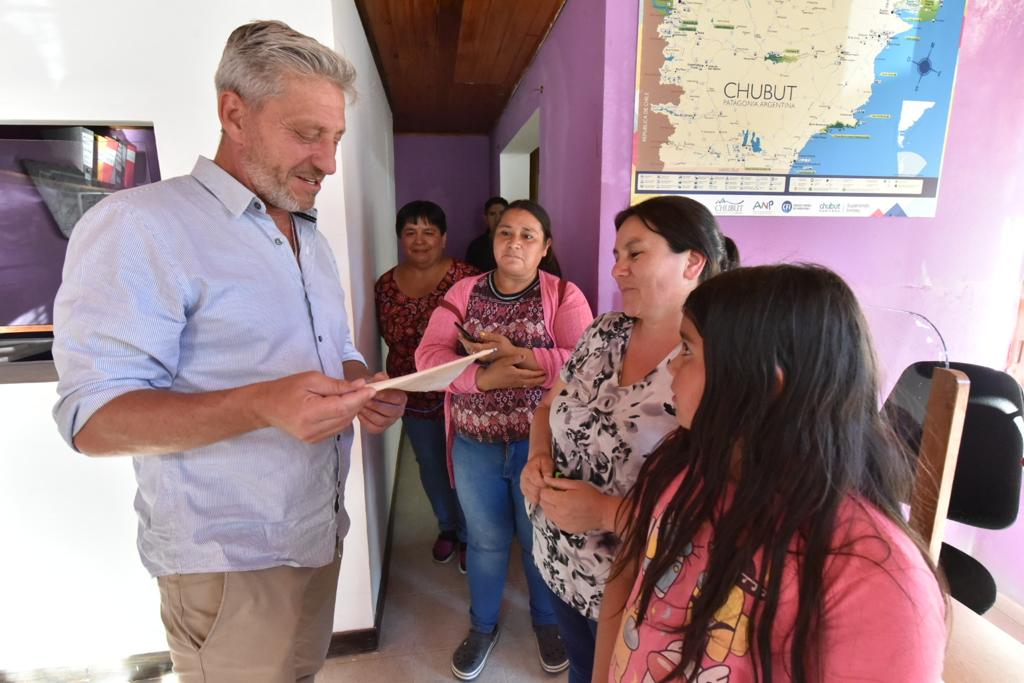 El Gobernador hizo entrega de un aporte del IAS, Lotería del Chubut, y luego recorrió la comuna rural acompañado de la comitiva. Primero estuvo en un establecimiento educativo donde fue recibido por el equipo directivo de la institución.