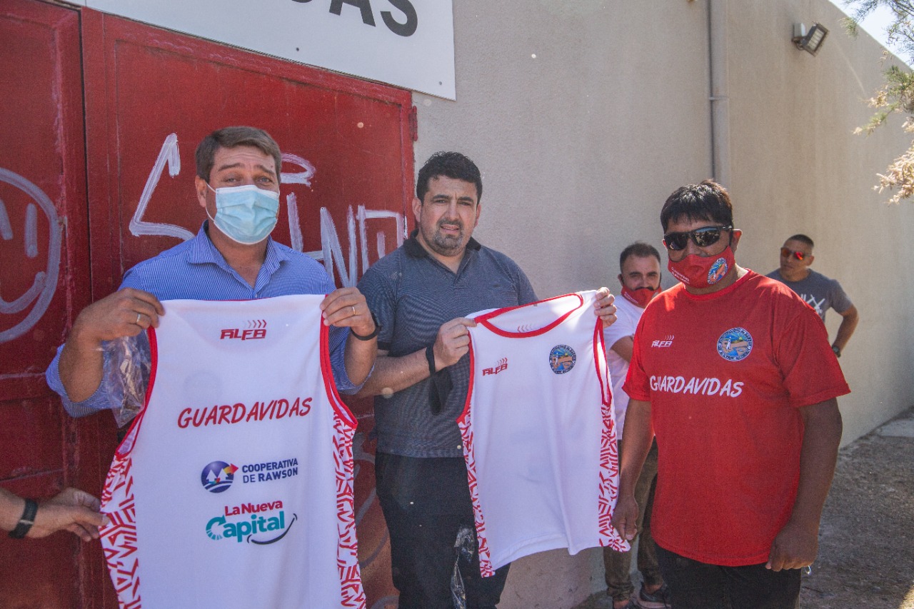 El intendente de Rawson, Damián Biss y el secretario de Gobierno, Miguel Larrauri se acercaron este viernes al puesto central de los guardavidas en Playa Unión para hacerles entrega del nuevo equipamiento a todo el cuerpo conformado por 70 guardavidas.