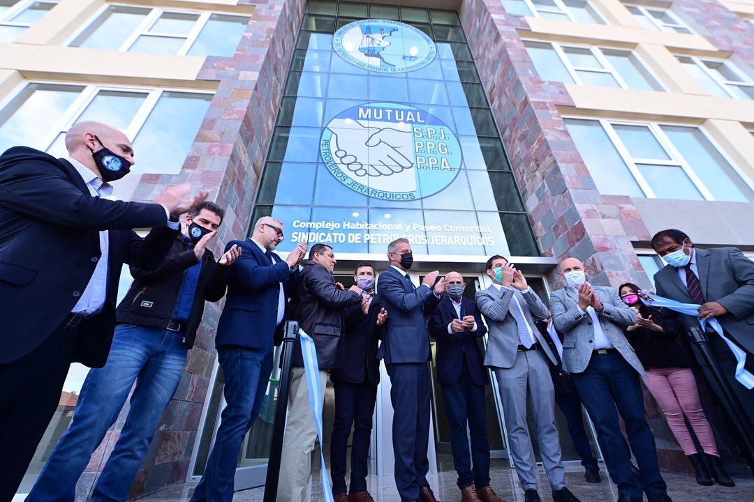 El gobernador del Chubut, Mariano Arcioni, participó esta mañana en Comodoro Rivadavia de la inauguración del Complejo Habitacional y Comercial del Sindicado del Personal del Sindicato del Personal Jerárquico y Profesional del Petróleo y Gas Privado, en el inicio de una jornada de una agenda que cuenta con distintas actividades programadas para celebrar el Día Nacional del Petróleo.