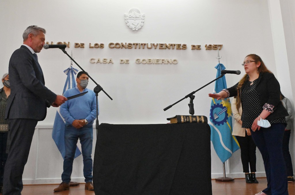 Participaron del acto realizado en el Salón de los Constituyentes de Casa de Gobierno los ministros de Salud, Fabián Puratich; de Turismo y Áreas Protegidas, Leonardo Gaffet; de Desarrollo Social, Familia, Mujer y Juventud, Mirta Simone; de Educación, Florencia Perata; la presidenta de la Administración de Vialidad Provincial, Cinthya Gelvez; el secretario de Gestión Pública y Modernización del Estado, Sergio De Cicco, y el subsecretario de Asuntos Municipales, Luis Aguilera.