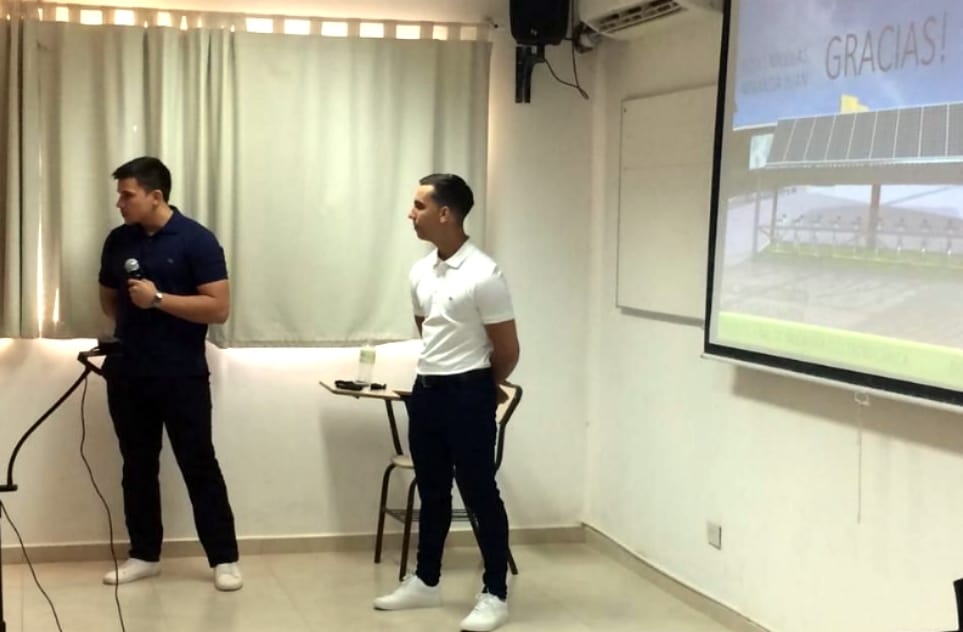 Se trata de Nicolás Losio y Juan Miranda, quienes presentaron su proyecto de Diseño de Gimnasio Sustentable cuyo objetivo es, a través de sistemas técnicos, eléctricos y mecánicos, lograr un espacio favorable con el medio ambiente.