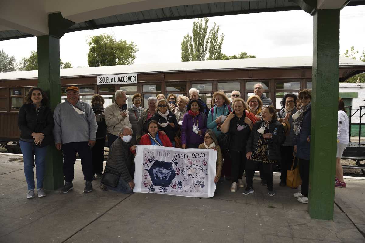 Aquel viaje de egresados que no pudo ser en 1965 se transformó mucho tiempo después en la celebración del reencuentro para los alumnos del Instituto Ángel D’Elía de San Miguel. Allí, 40 kilómetros al noroeste de la ciudad de Buenos Aires cursaron la secundaria y nacieron lazos que perdurarían con el tiempo. Y casi medio siglo más tarde, ya peinando canas, se organizaron para para ir a Salta y cumplir aquel sueño postergado. Les gustó tanto la experiencia que una vez al año eligen una de las maravillas de la Argentina y salen de viaje otra vez. El sábado pasado le tocó el turno a La Trochita,el legendario tren a vapor que ese día volvió a surcar la Patagonia entre Jacobacci y Ojos de Agua, 43 kilómetros de recorrido que asombró al grupo, allí donde el monte se hace estepa y asoma la silueta de las montañas de la precordillera en la Región Sur de Río Negro. Esta es la historia de un viaje de emociones y abrazos.