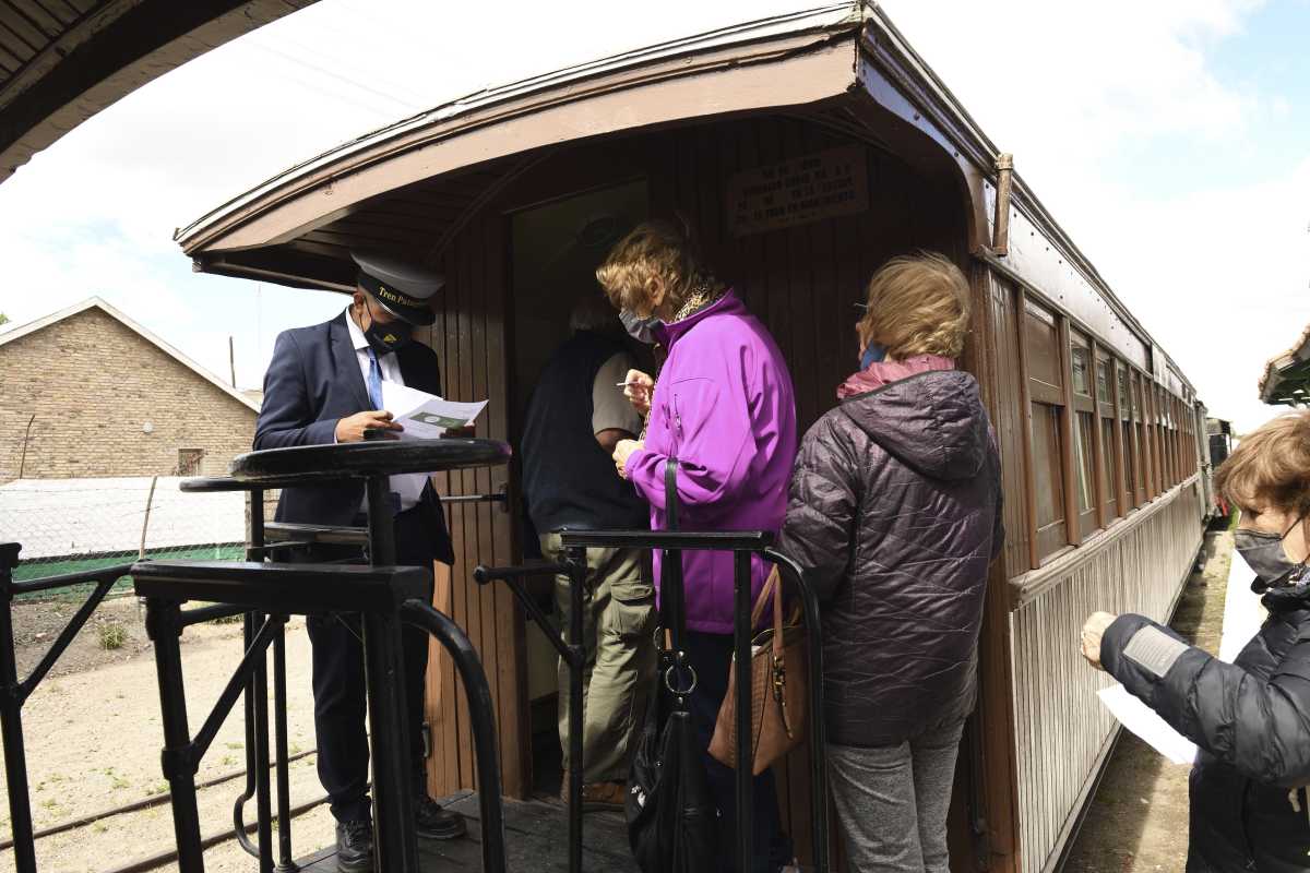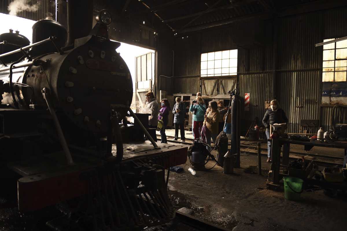Antes de subirse al tren, se acercaron al taller donde los mecánicos ponían a punto la locomotora, mientras la guía de Turismo Alejandra Díaz, integrante de la Cooperativa Ayufin Mapu, les explicaba detalles de la historia de las centenarias locomotoras y del trabajo de los ferroviarios.