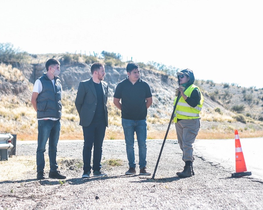 El jefe comunal recorrió el acceso norte dónde comenzarán los trabajos y dialogó con las trabajadoras dolavenses que integran la primera cuadrilla de mujeres de Vialidad Nacional. Estuvieron junto al intendente Bowen, el presidente del Concejo Deliberante, Leonardo Reuque, el secretario de Gobierno, Miguel Montiel y el secretario de Obras y Servicios Públicos, Luka Jones.