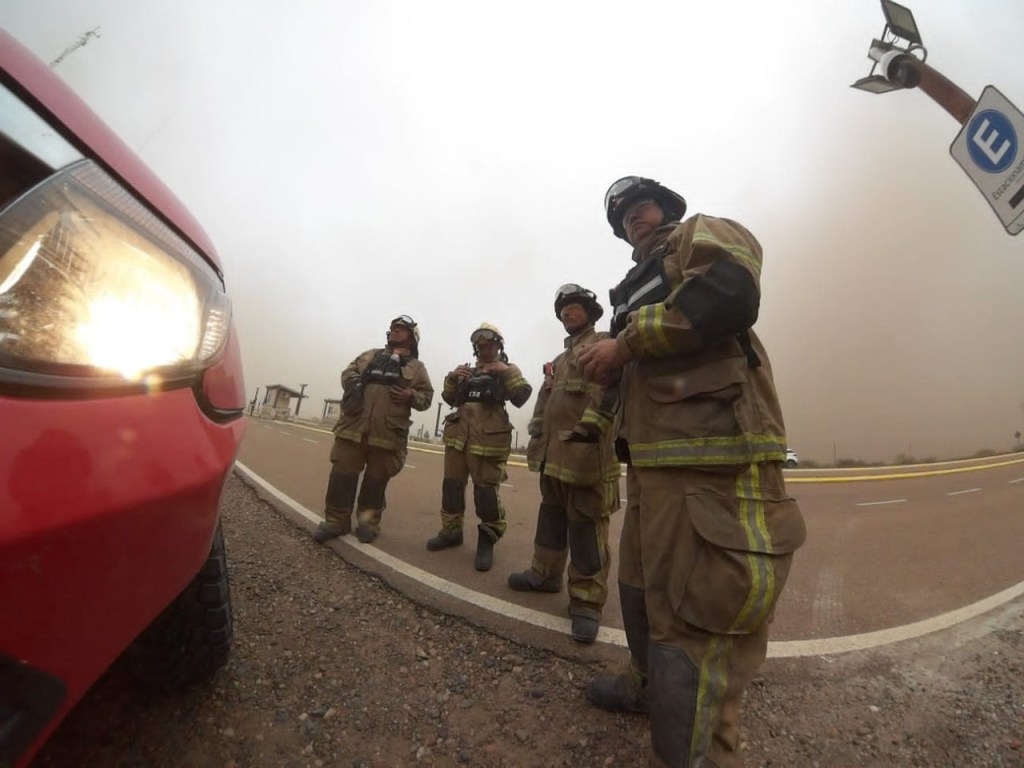 Personal de Bomberos Voluntarios de los cuarteles de Rawson, Trelew, Puerto Madryn y Puerto Pirámides llevan trabajando arduamente en los focos de incendio desde el sábado 1 de enero, con el apoyo de máquinas de Vialidad Provincial y personal de Defensa Civil, de Policía del Chubut, APSV, y Ministerio de Seguridad y de Turismo.