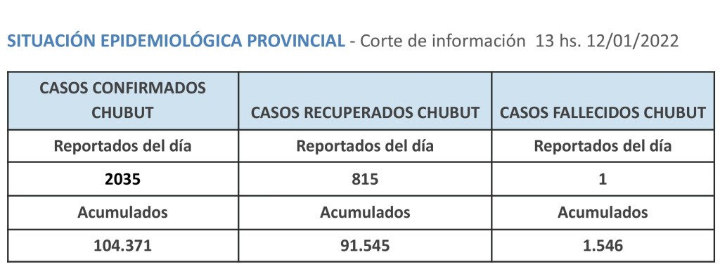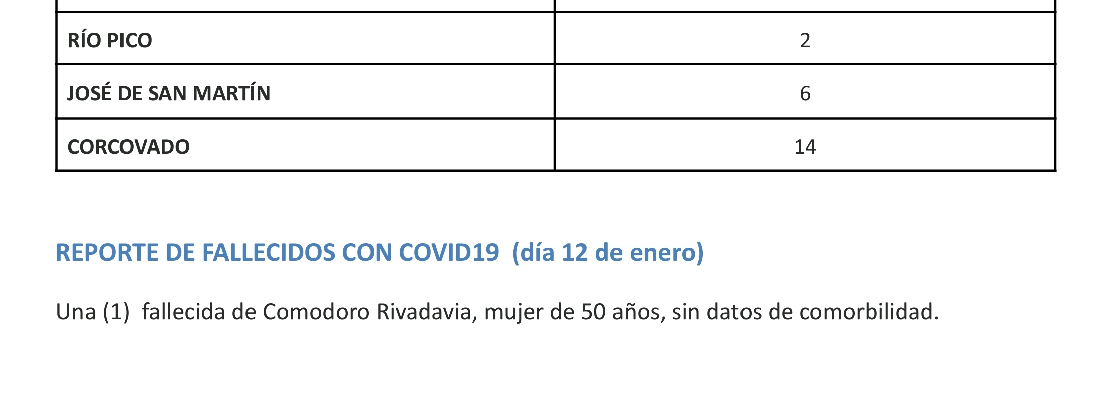Comodoro, Madryn, Trelew, Rawson y Esquel son las ciudades con más.contagios. La mujer fallecida tenía 50 años y según el reporte de hoy, en la Provincia hay 11.233 casos activos. Aumentan las intervenciones