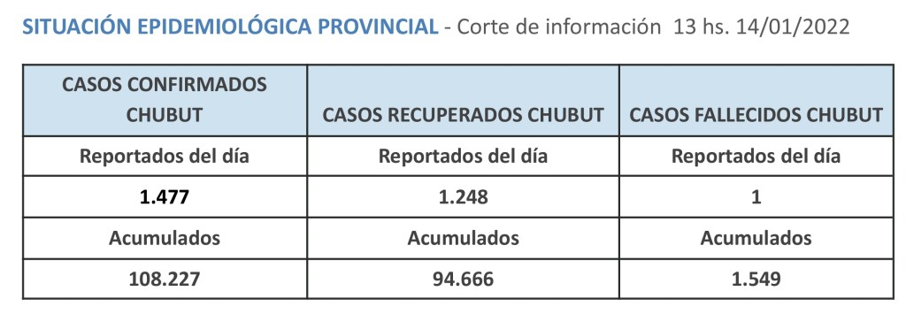 La provincia reporta menos casos que ayer, aunque la cifra sigue elevada. Son 1477 los nuevos positivos y 11933 los casos activos. Comodoro y Madryn son las ciudades con más contagiados. Mirá el Reporte