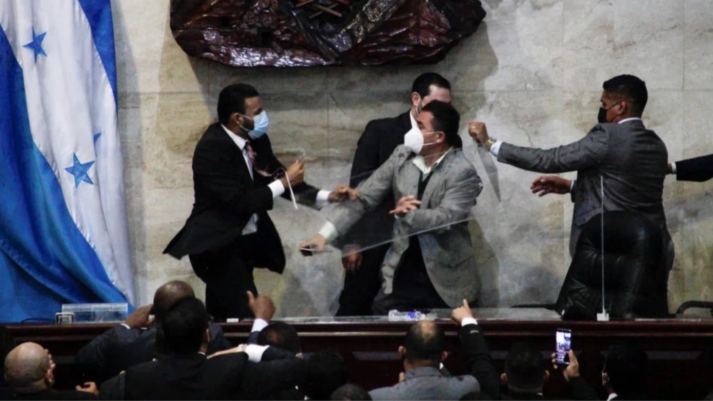 El Congreso de Honduras inauguró hoy sus labores legislativas 2020-2026 con la elección de su directorio provisional en medio de golpes, gritos y empujones por parte de 20 diputados del partido de la presidenta electa, Xiomara Castro, quien, al igual que su marido y exmandatario, Manuel Zelaya, denunciaron «traición» y pidieron la expulsión de los «rebeldes».