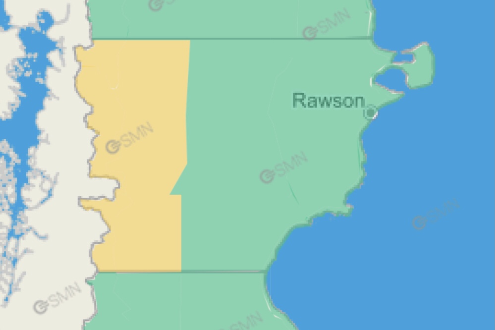 El alerta amarillo, al igual que ayer, abarca la Meseta de Cushamen, Meseta de Futaleufú, Meseta de Languiñeo y Meseta de Tehuelches.