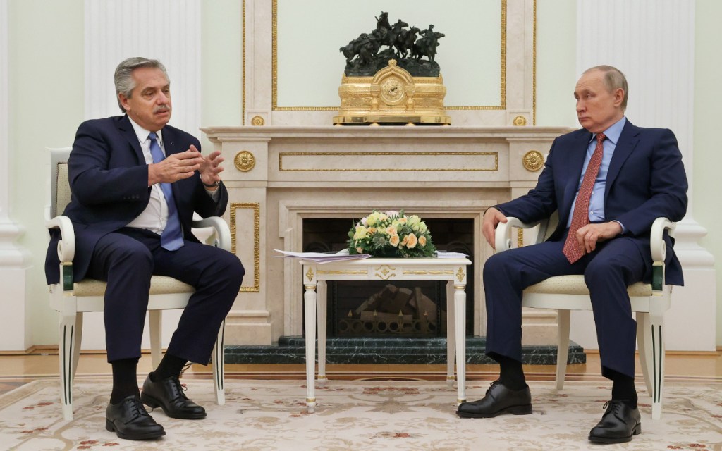 En otro momento de la reunión, Fernández le explicó a su par ruso que “la Argentina vive particularmente una situación muy especial, producto de su endeudamiento”, y agregó que “la economía depende mucho de la deuda que tiene con el FMI y de la influencia que Estados Unidos tiene en ese organismo”.