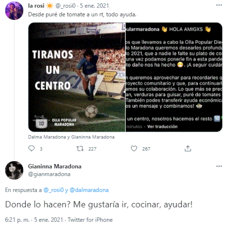 Justamente esta última la felicitó por Twitter. “Giannina me respondió un tuit asegurando que le parecía increíble mi tatuaje. Con ella intercambié unas palabras muy agradables, y además me ayudó con una olla popular que se hizo en José Mármol. No podía creer que había hablado con ella. Eese día lloré mucho”, admitió la joven.