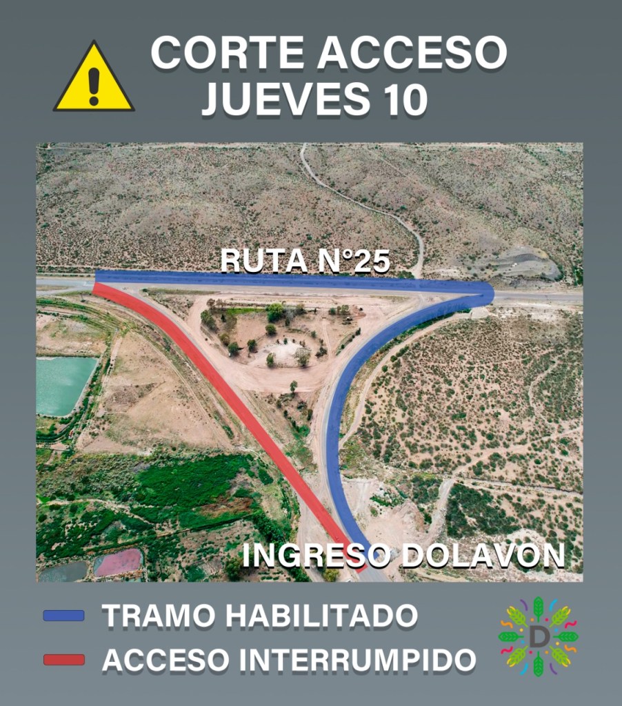 La municipalidad de Dolavon, a través del área de Planificación, Obras y Servicios Públicos, comunica que los días miércoles 9, jueves 10 y viernes 11 de febrero, desde las 8 hasta las 18 horas se realizarán tareas de bacheo en las ramas existentes de los ingresos a la localidad de Dolavon donde se construirá la rotonda.