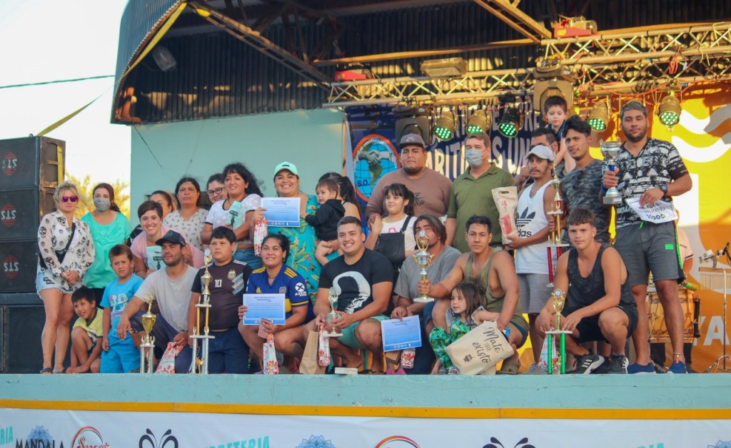 El intendente Damián Biss junto a la comisión de Mujeres de Marineros y el Sindicato de Obreros Marítimos Unidos (SOMU) fueron los encargados de entregar los premios a los participantes de los diversos juegos que se realizaron en la costa del balneario capitalino.