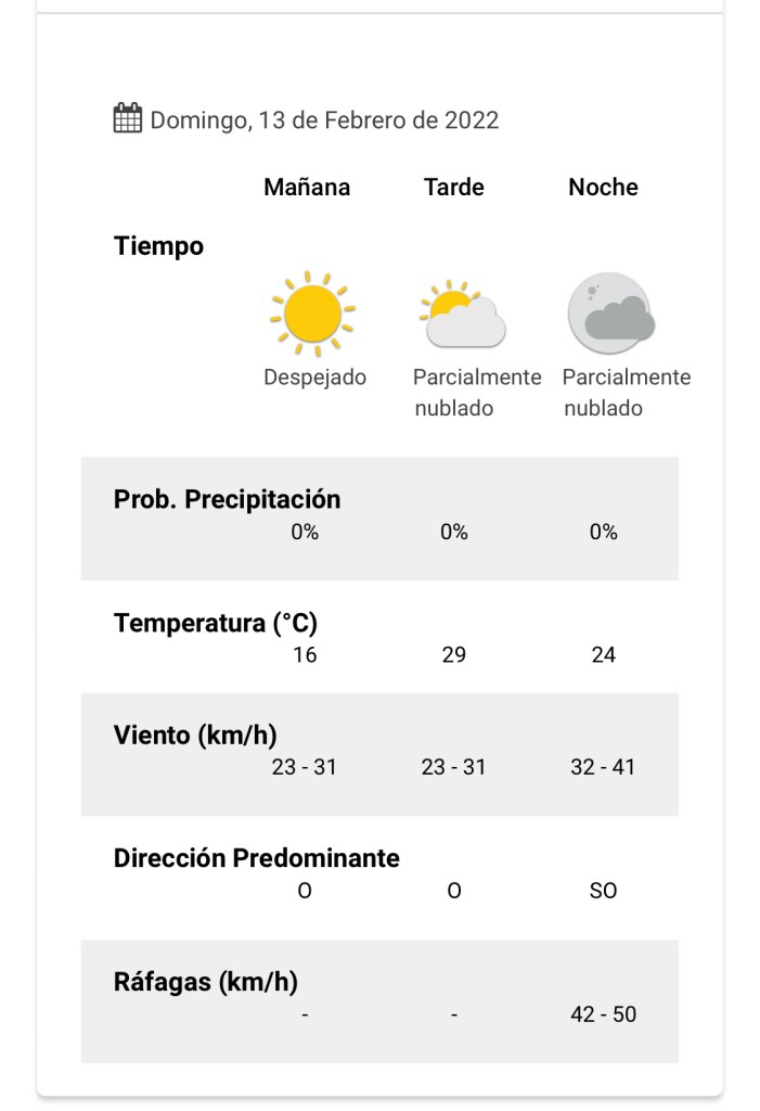 Hoy en toda la provincia se presentará con buen clima en toda la provincia, con altas temperaturas desmejorando hacia la noche con marcado descenso de la temperatura y en algunas localidades acompañado de fuertes vientos. A continuación fíjate cómo estará el clima en tu ciudad.