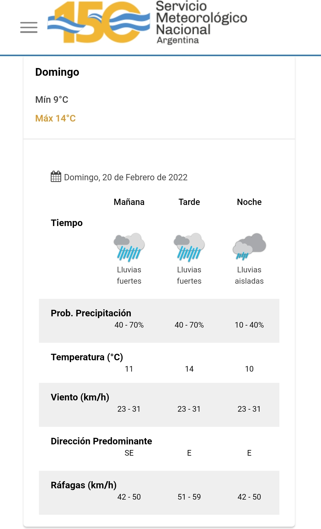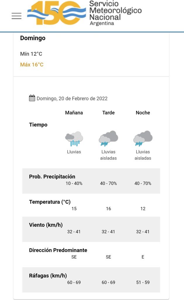 Este es el pronóstico de la temperatura elaborado por el Servicio Meteorológico Nacional para la provincia este domingo