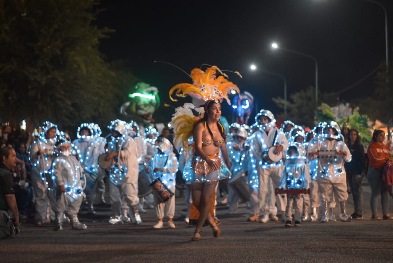 La reconocida locutora Alicia Escobar animó el desfile en el corsódromo, sobre la avenida 25 de mayo, con la participación especial del Ballet Camaruco de Comodoro Rivadavia y las pasadas de las comparsas “A todo ritmo”, “Variedades”, “Ara Yevi”, “La Batucada” e “Inayén” junto a caporales “Inti Huayras”.