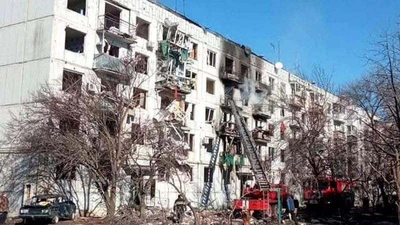 Otro niño murió cuando un edificio de departamentos fue bombardeado en el noreste de Ucrania, durante el segundo día de la invasión.